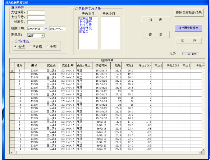 5、采用高級數(shù)據(jù)庫管理技術(shù)對檢測數(shù)據(jù)進(jìn)行管理,可以對存儲的檢測數(shù)據(jù)按不同的方式進(jìn)行排序、查詢及打印。